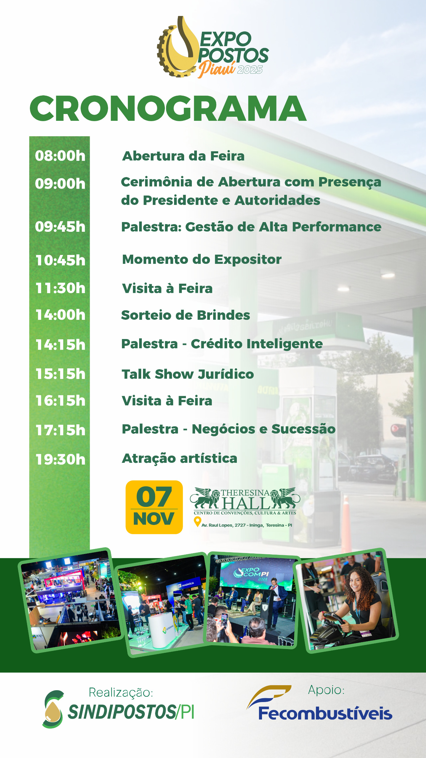 O evento ocorre no dia 07 de Novembro de 2025, em Teresina. Uma idealização do Sindipostos-Pi, em parceria com a Fecombustíveis, no intuito de fortalecer a integração e os negócios do setor.